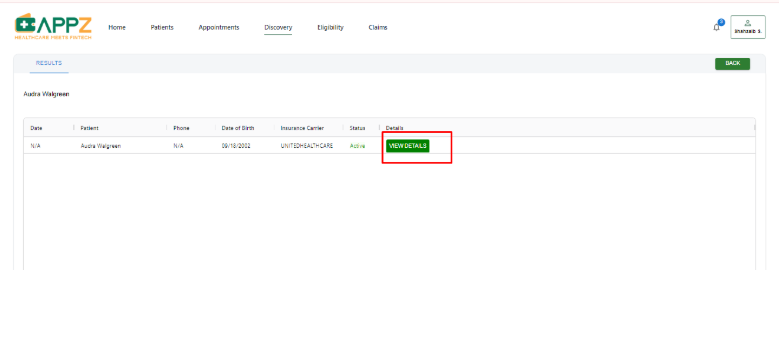 Step 4: After click on the Search button, you can view further details related to the discovery results. By clicking on View details button, you can run Discovery for that specific patient